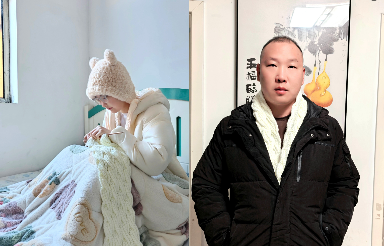 (小琳在康复期间织围巾)(郑一戴着小琳亲手织的围巾)