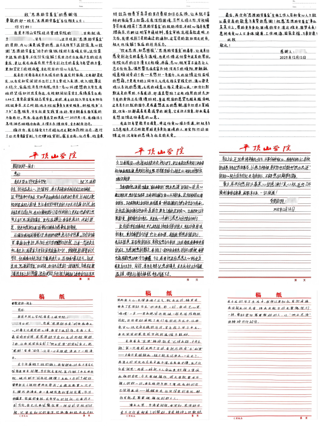 (平顶山学院受资助学子写给郑一的感谢信)